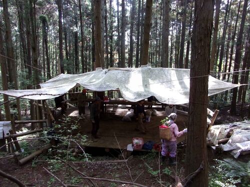 今年初めての鳥屋での森カフェづくり、今回はデッキ周辺の掃除をし、その他はコーヒー豆を炒って挽いて・・贅沢なコーヒーをいただきながらのんびり過ごしました。おひとりが森で見つけた、あけびのつるで籠作りに挑戦。みごと完成させました。参加は10人 同…