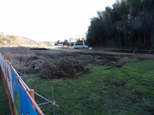 トンネル工事は斜坑掘削を終え、本坑のトンネル掘削に入っているようだ。しかし、住宅などがあるため、変電所敷地の造成にはまだとりかかれていない。一部道路をつくる準備が行われている。 相模川、大島の方向を見て↓ 上の写真を少し拡大↓ 変電所に沿った道…