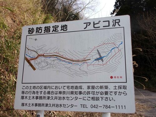 アビコ沢からの雨水が国道413号にあふれでることがあったため、水路の工事が行われたと聞きました(数年前)。その工事費が高額だったと聞き、上流にある砂防指定地・アビコ沢とはどんなところか行ってみました。台風19号(2019年)の時はこの隣の沢もその隣…