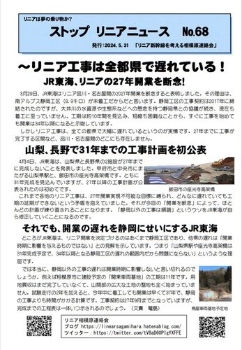 ●リニア工事は全都県でおくれている! ●リニア新幹線の代表的な工事の遅れ ●静岡県川勝知事辞任に思う。~自治体の長としてあるべき姿は⁉~ ●みんなの声(さくらまつりでのシール投票) ●リニア、大西大通り線 地権者の声 ●相模川リニア橋りょう工事の騒音・…