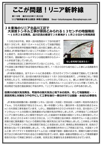 川崎で活動している私たちの仲間、「リニア新幹線を考える東京・神奈川連絡会」のニュースをご紹介します。 「ストップ・リニア!訴訟原告団&リニア新幹線沿線住民ネットワーク」のサイトからもご覧になれます。リニア訴訟|ストップリニア訴訟原告団