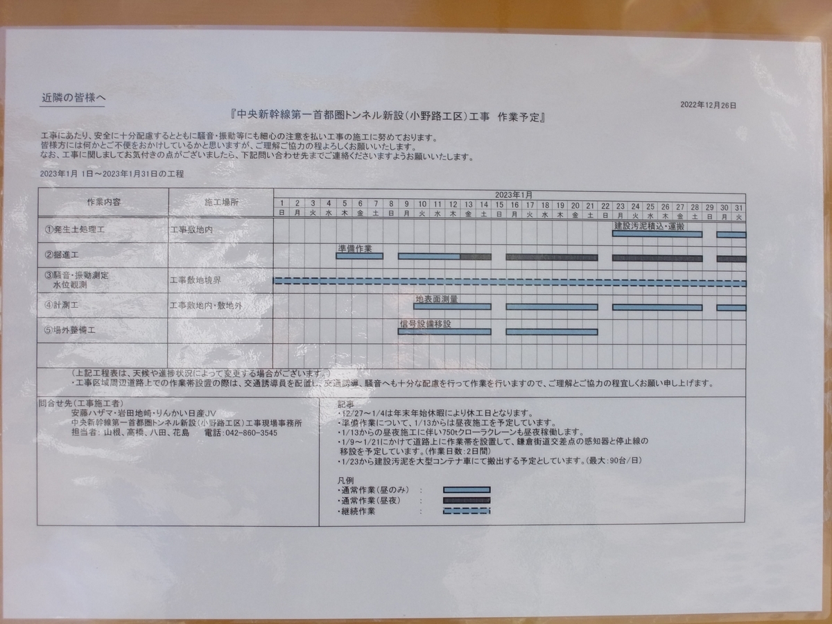 1月の小野路非常口・作業予定を見て、調査掘進開始かと思いましたが、実際にはまだ始まっていないとのことです。準備作業が続いています。