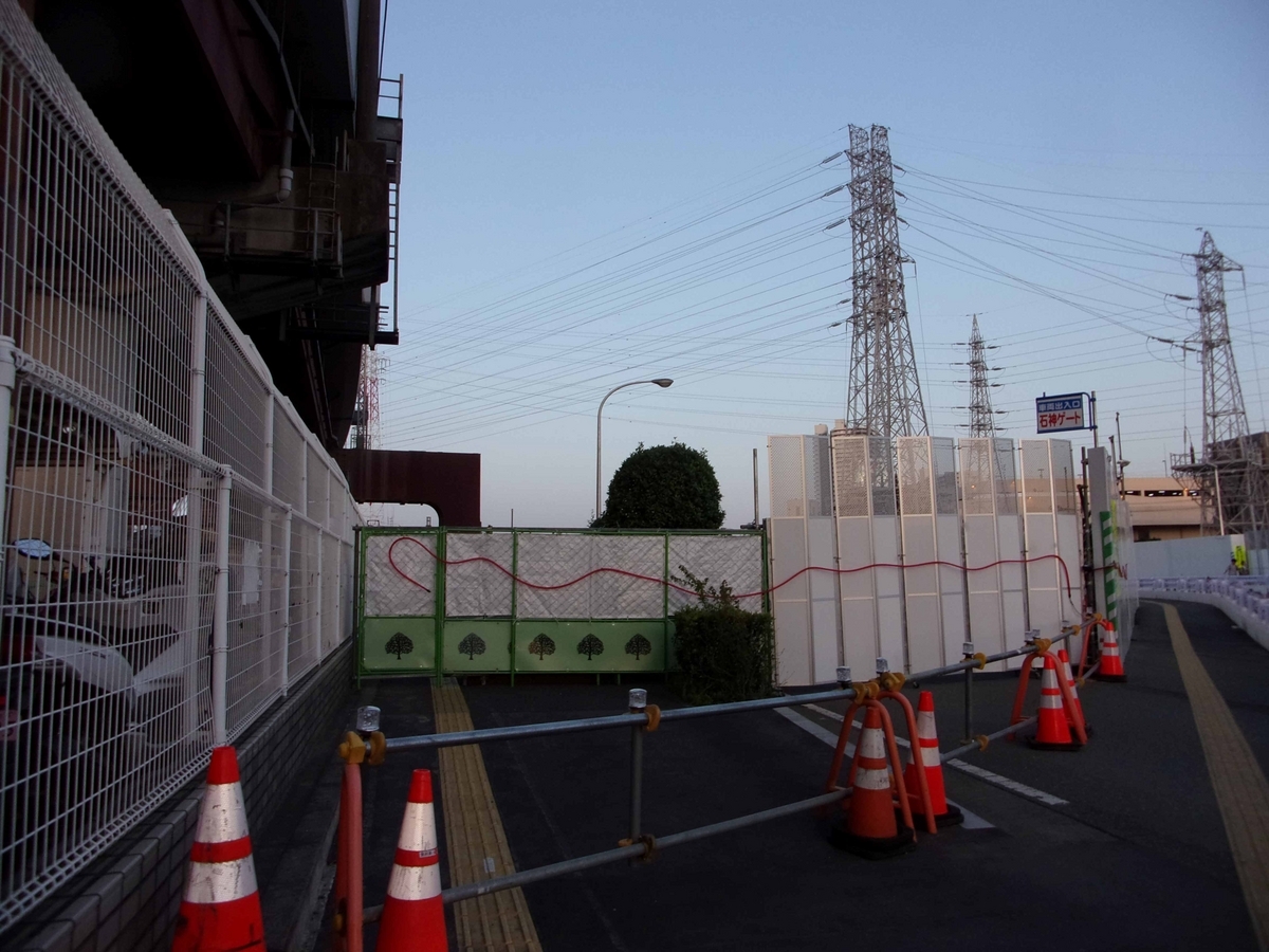 2023-06-23 リニア神奈川県駅に新しいゲート(相模原) JR横浜線・相模線に沿って、リニア駅の工事用ゲートが新しくつくられていた。リニア駅掘削を横浜線との境まで進めるための工事ヤードで、地中連続壁と土留め壁の工事を行い、その後地表を覆った後(覆工 ふっこう)、内部を掘削するという。 左が京王線の高架、道路の右側がリニア駅工事ヤードの仮囲い↓ 新しいゲートは石神ゲート↓